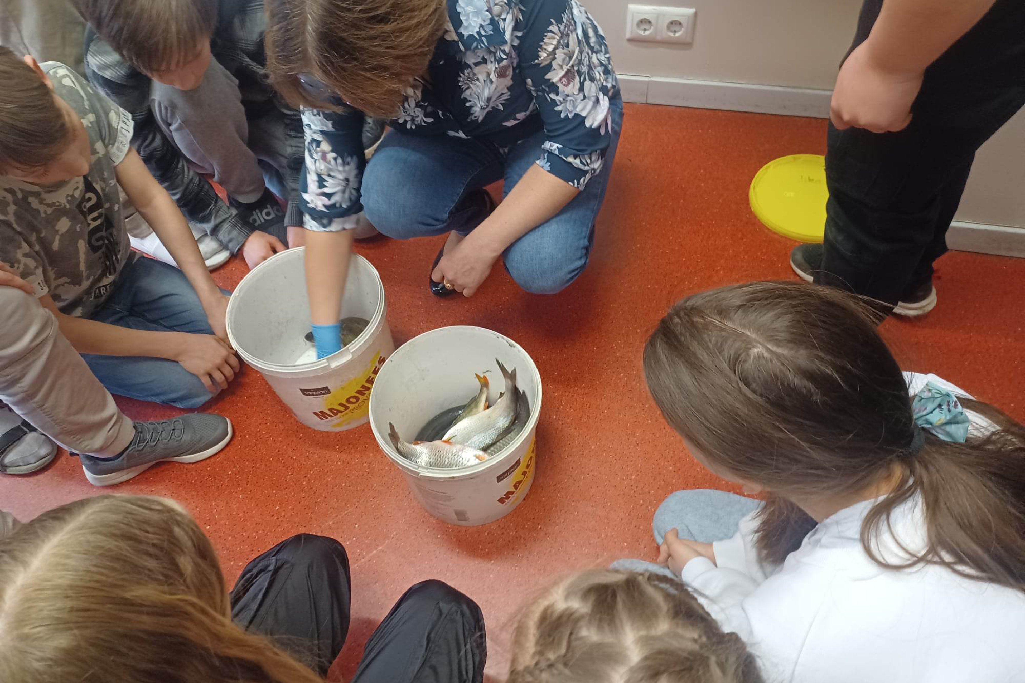 Õpetaja Kaisa Kütt tõi kooli 20 erinevat kala, et lapsed saaksid loodusõpetuse tunnis praktiliselt õppida. Kalade teemalise loodusõpetuse tunni viis läbi õpetaja Janne Änilane.