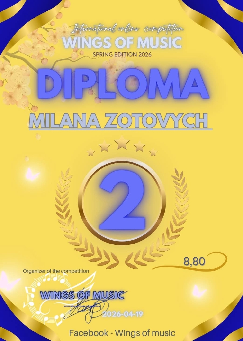 Meie kooli õpilased olid väga tublid Vilniuses aprillis toimunud rahvusvahelisel konkursil “Wings of Music 2026”.