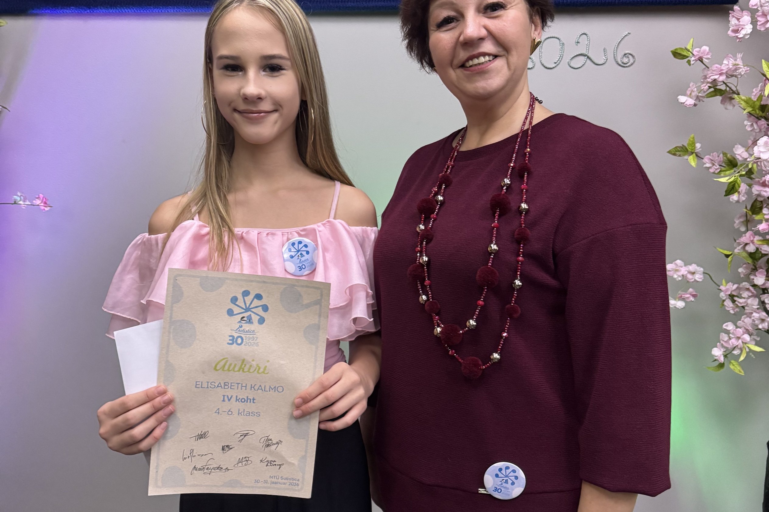 Ülejõe Põhikooli 6.a klassi õpilane Elisabeth Kalmo, kes õpib Pärnu Kunstide Kool Reine Niine Laulustuudios, saavutas vabariiklikul noorte solistide konkursil Solistica 2026 oma vanuseklassis 4. koha! Elisabeth esitas laulu "Läbi peegli" (autor Mirjam Kits).